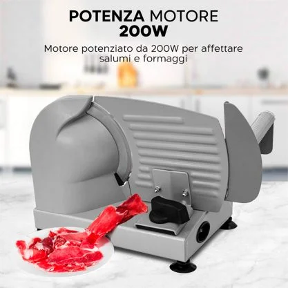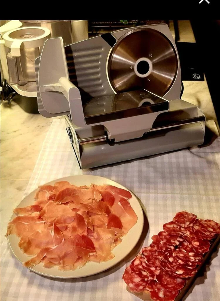 “Affettatrice eccezionale! Taglia salumi e formaggi con precisione assoluta e senza fatica. La lama in acciaio inox è super affilata e la regolazione dello spessore è perfetta per ogni esigenza. Ottima stabilità grazie ai piedini a ventosa, non si sposta di un millimetro!”