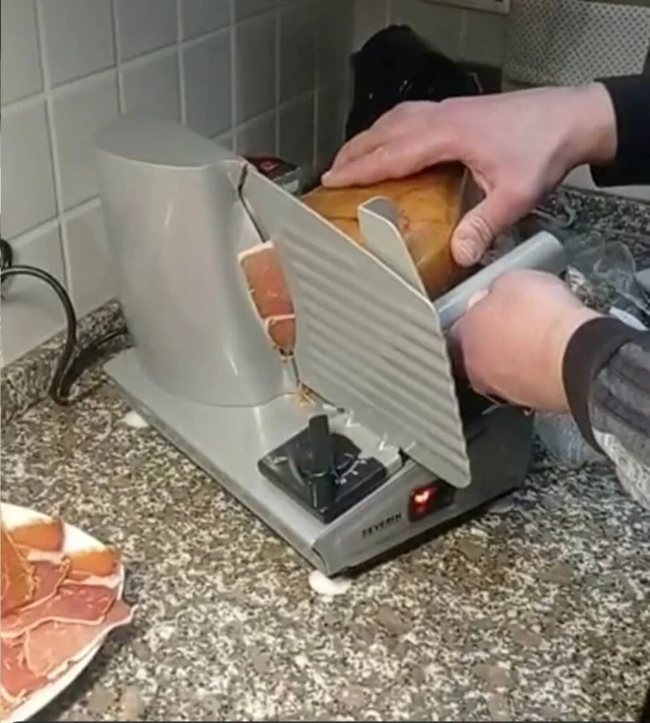 “Finalmente un’affettatrice compatta e potente! La utilizzo tutti i giorni per tagliare pane, prosciutto e formaggi senza difficoltà. Il blocco di sicurezza è un grande plus, mi sento sempre tranquilla quando la uso. Facile da pulire e davvero solida!”
