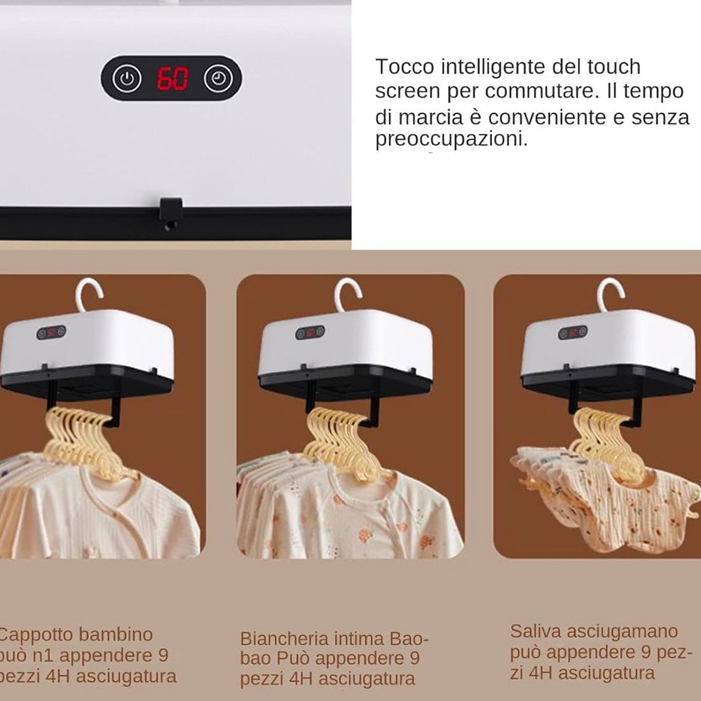 La Asciugatrice Elettrica Portatile Pieghevole non solo asciuga i tuoi capi rapidamente ed efficientemente, ma grazie al suo sistema UV LED integrato, offre una pulizia profonda e innovativa. Questa tecnologia elimina batteri e impurità, garantendo una freschezza superiore ai tuoi vestiti. È una soluzione perfetta per chi cerca igiene e praticità in un unico dispositivo, sia a casa che in viaggio. Silenziosa, compatta e facile da usare, rappresenta una scelta rivoluzionaria per la cura del bucato.