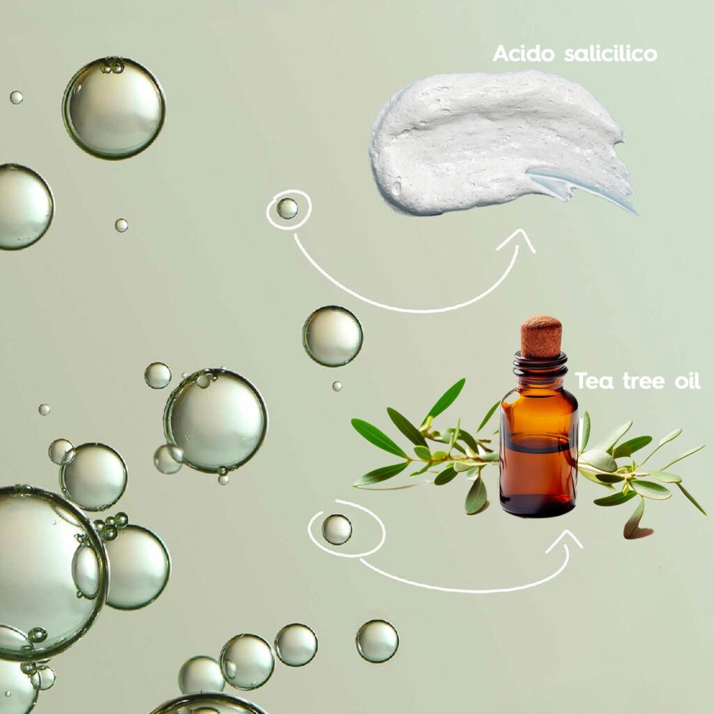 Tea tree oil: con le sue proprietà antibatteriche e antimicrobiche, fornisce una difesa aggiuntiva durante il trattamento. Aiuta a prevenire infezioni e promuove un ambiente cutaneo pulito e salutare, riducendo il rischio di complicazioni. Senza solfati, parabeni e siliconi.