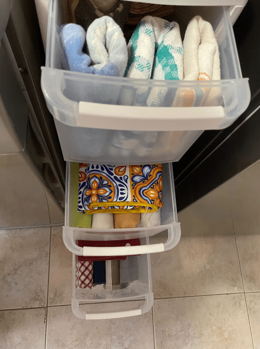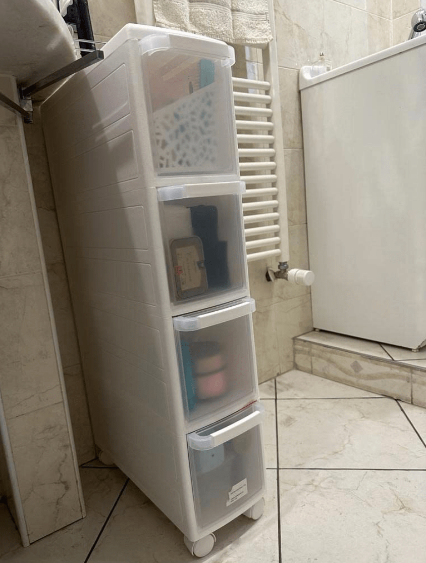 La cassettiera salvaspazio ha trasformato completamente il mio bagno. Ora posso tenere tutti i miei trucchi e accessori organizzati e a portata di mano, i cassetti sono abbastanza spaziosi per contenere tutto ciò di cui ho bisogno e le maniglie facilitano l’estrazione. Non potrei essere più soddisfatta di questo prodotto!