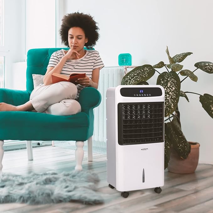 Con il display digitale intuitivo, monitorare e regolare le impostazioni del raffrescatore è un gioco da ragazzi. Il telecomando incluso offre la libertà di controllare il dispositivo comodamente da qualsiasi punto della stanza, permettendoti di mantenere la tua routine senza interruzioni. Inoltre, il timer programmabile fino a 12 ore consente una personalizzazione totale del funzionamento, ottimizzando il consumo energetico secondo le tue esigenze.