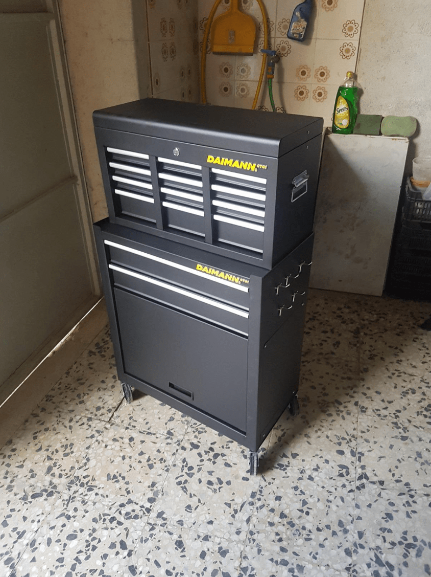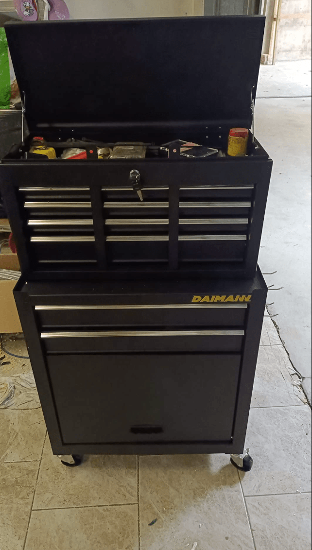 La sua solida costruzione in lamiera d’acciaio garantisce una durata eccezionale, e mi piace molto il fatto che sia dotato di una serratura per tenere al sicuro i miei attrezzi più preziosi. I vani spaziosi e i ganci sulla parete laterale mi aiutano a mantenere tutto ben organizzato, e le ruote multidirezionali facilitano notevolmente il trasporto.