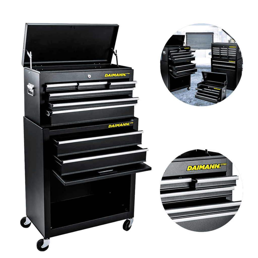 Dotato di 9 spaziosi vani completamente richiudibili, questo carrello ti offre l’ampio spazio di archiviazione di cui hai bisogno per tenere tutti i tuoi attrezzi a portata di mano.