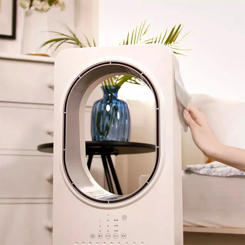 Senza le pale tradizionali, basta un panno umido per rimuovere la polvere accumulata, non c’è bisogno di smontare nulla o affrontare spazi angusti!!! È un vero sollievo in termini di manutenzione.