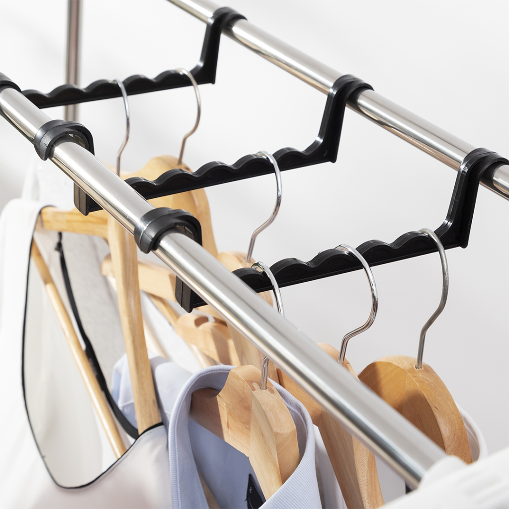 La caratteristica di 6 supporti aggiuntivi per appendere le grucce offre un’opzione di asciugatura estremamente versatile. Puoi scegliere di appendere i tuoi vestiti in posizione frontale o laterale, garantendo che siano asciutti e pronti per essere indossati in qualsiasi modo preferisci.