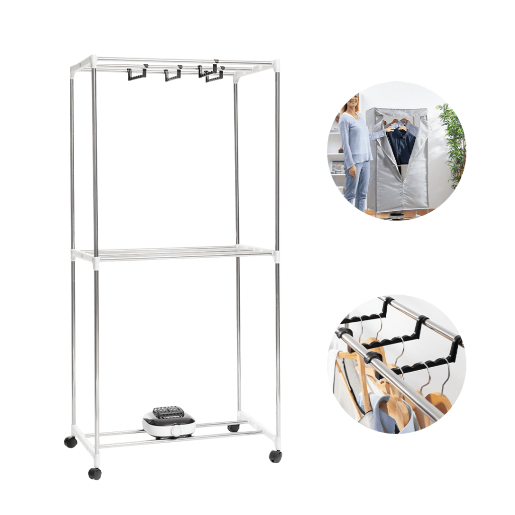 Con una temperatura massima di 70 ºC, questa asciugatrice elettrica offre una potente funzione di sterilizzazione. Non solo i tuoi vestiti si asciugano rapidamente, ma vengono anche liberati da batteri e odori sgradevoli. Vestiti freschi e puliti sono garantiti ogni volta che utilizzi questa asciugatrice