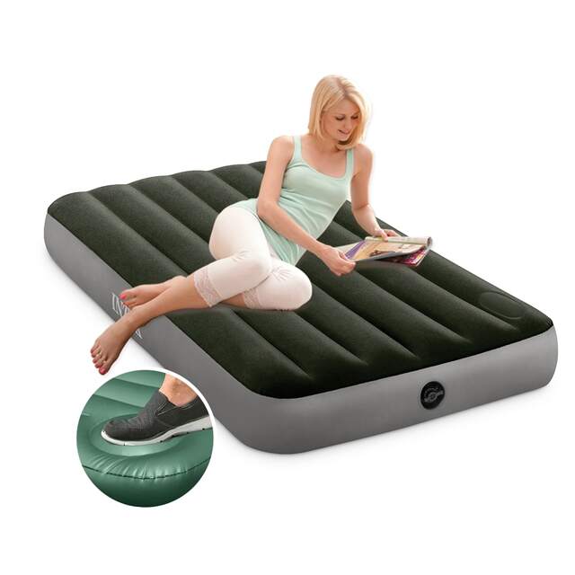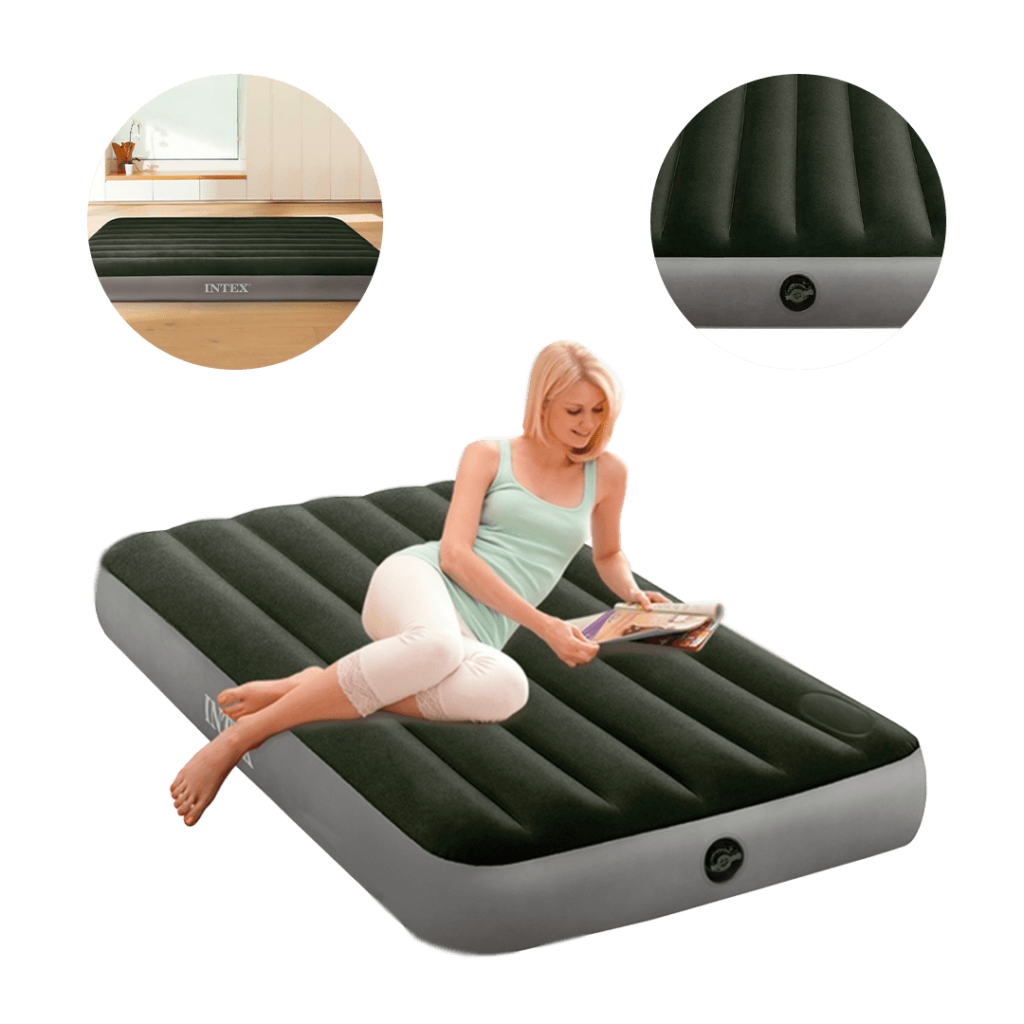 Grazie alla praticità della valvola a doppia azione, gonfiare il materassino non potrebbe essere più semplice! Basta premere con il piede sull’angolo della valvola per far entrare l’aria e gonfiare il materassino, questo sistema innovativo consente di gonfiare il materassino in pochi minuti, senza dover utilizzare pompe o altri strumenti aggiuntivi.