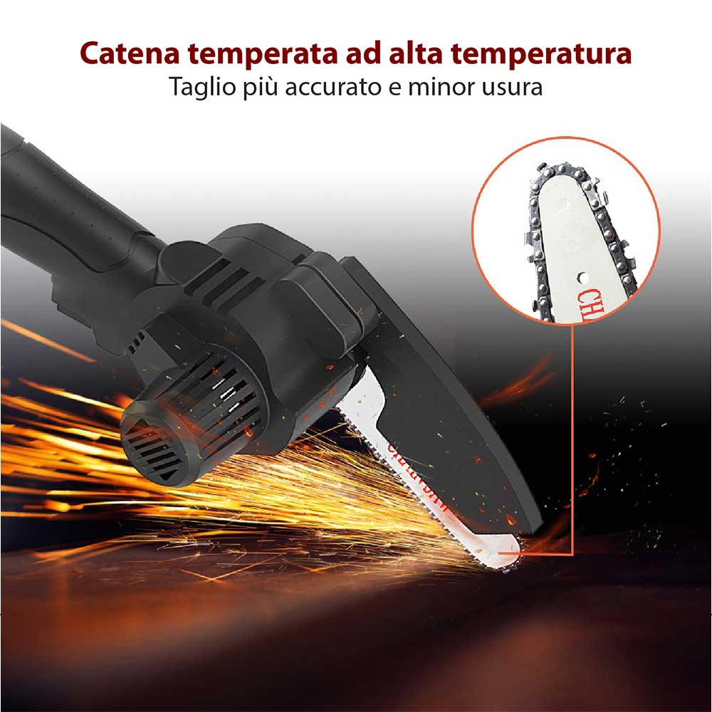 προστατευτικός απορροφητής, με την ικανότητά του να περιστρέφεται έως και 150°, δεν προστατεύει μόνο από τα σπασίματα της ξυλείας, αλλά επιτρέπει επίσης μια ακριβή κατεύθυνση στην κοπή. Η αντιολισθητική λαβή προσφέρει ασφαλή εφαρμογή, εξαλείφοντας τον κίνδυνο ολίσθησης κατά τη χρήση, εξασφαλίζοντας βέλτιστο έλεγχο σε κάθε κατάσταση.