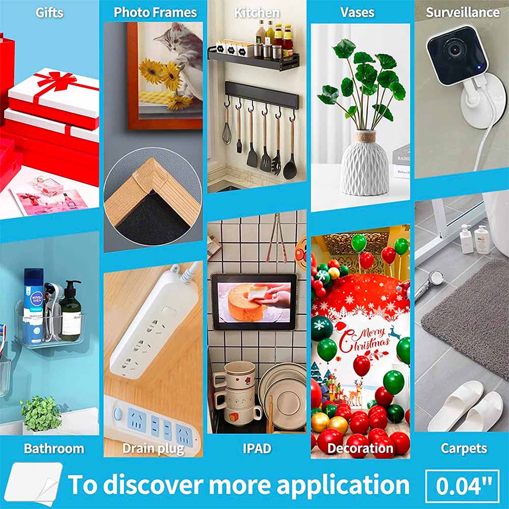 La tecnologia nano-micromolecolare rende il nostro nastro incredibilmente facile da applicare e rimuovere. Non dovrai più preoccuparti di residui appiccicosi o danni alle superfici. Basta attaccare, rimuovere quando necessario e riutilizzare, tutto senza complicazioni.