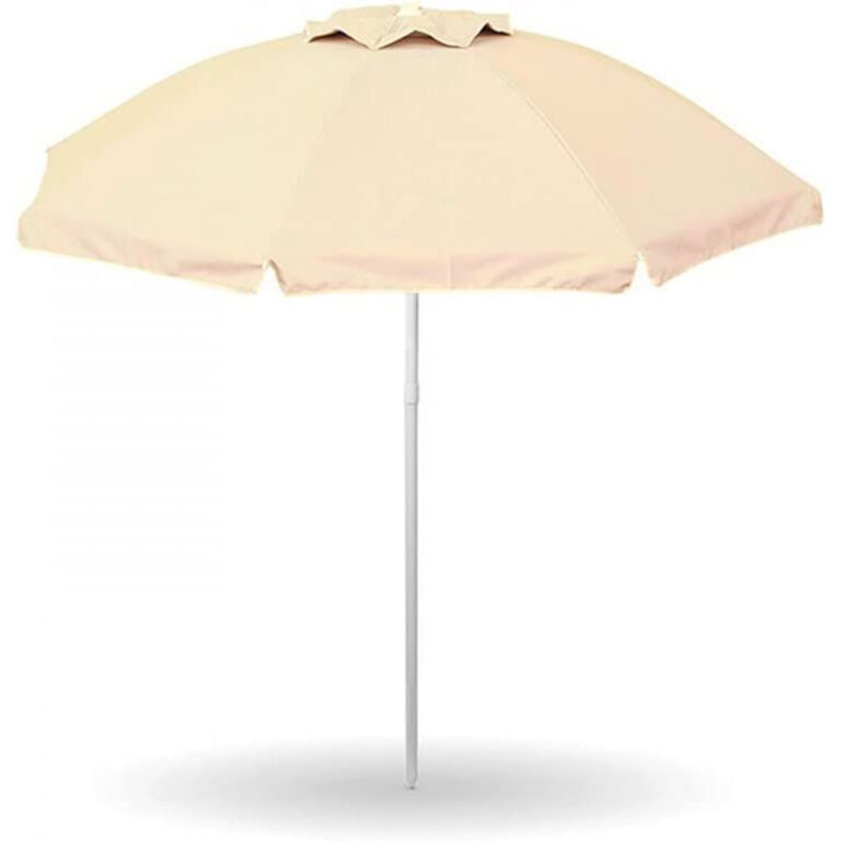 Il nostro ombrellone da spiaggia presenta una struttura resistente, con un robusto tubo in alluminio e 8 stecche in vetroresina che garantiscono stabilità e resistenza al vento. Grazie a questa solida costruzione, l’ombrellone non oscilla e non si deforma facilmente.