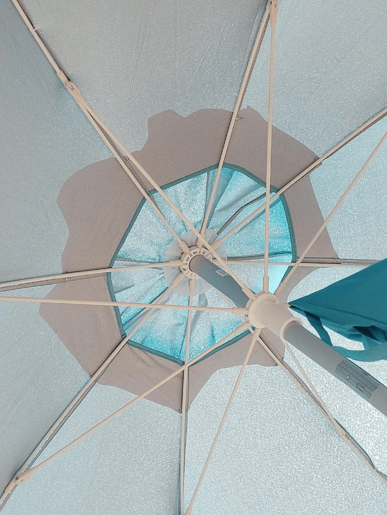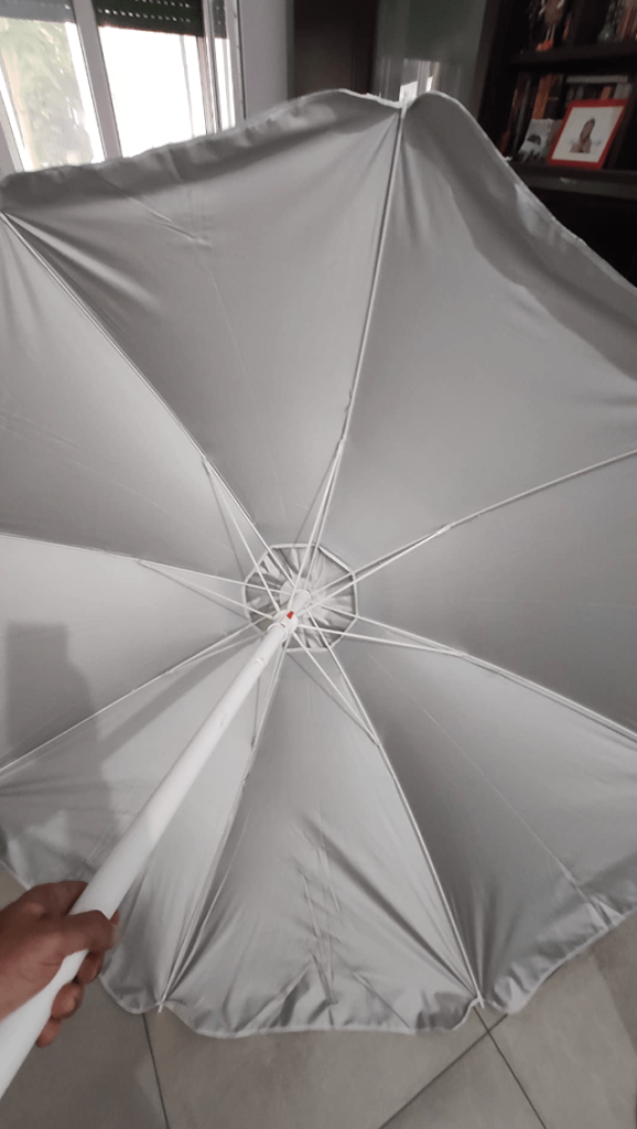 La lega di alluminio lo rende leggero da trasportare, ma allo stesso tempo solido e resistente. Ho apprezzato particolarmente l’apertura nella parte superiore che favorisce la circolazione dell’aria, mantenendo l’ombra fresca e confortevole anche nelle giornate più calde.