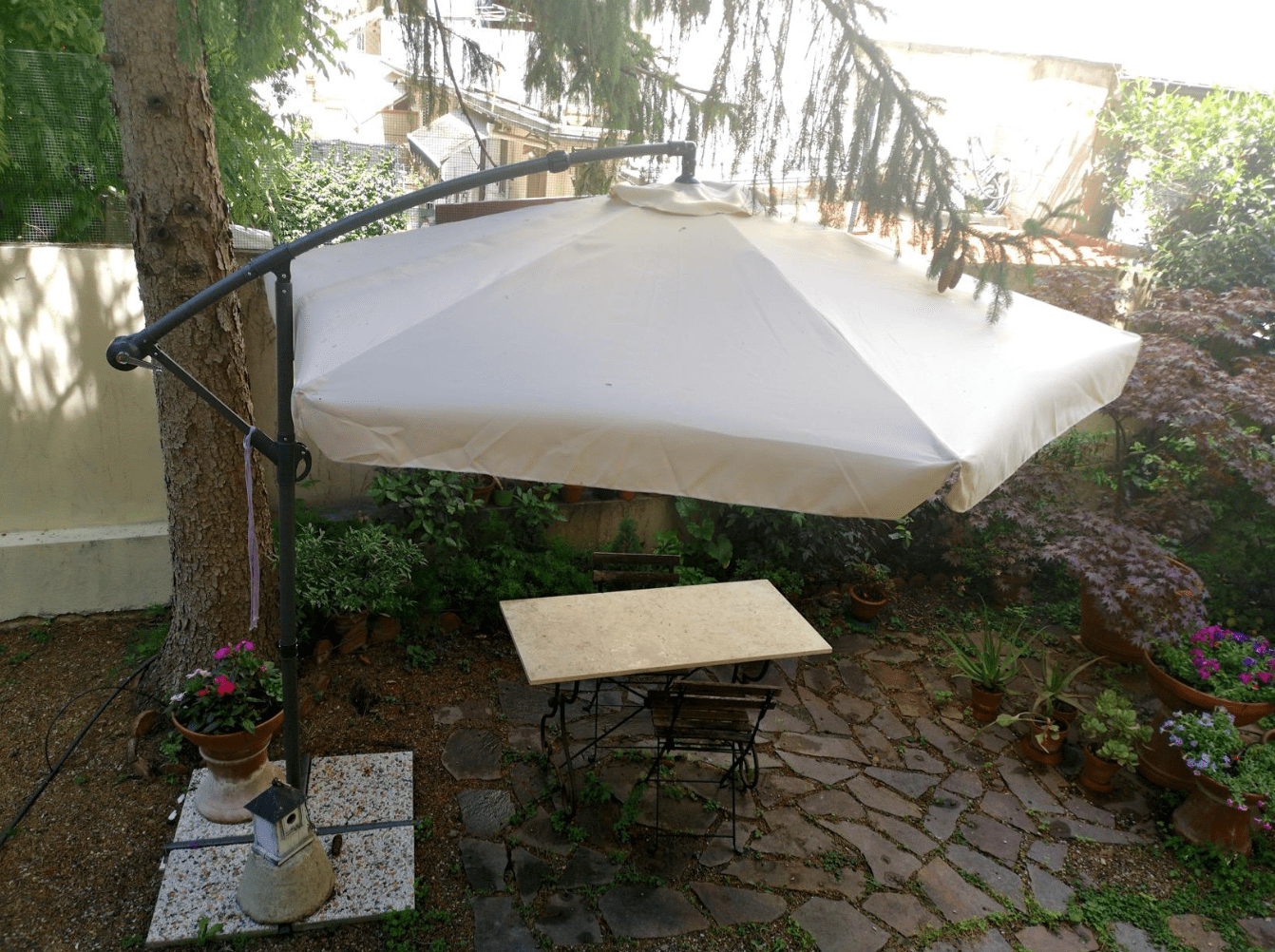 La sua struttura robusta assicurano una stabilità eccezionale anche nelle giornate ventose, mentre l’ampio telo protettivo crea un’atmosfera accogliente e piacevole