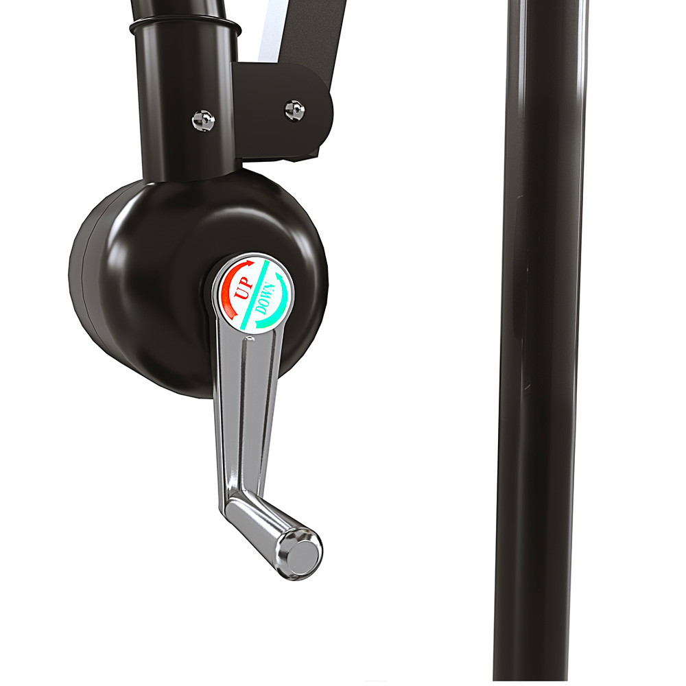 È dotato di un innovativo sistema di apertura e chiusura tramite manovella. Grazie a questo intelligente meccanismo, basta una semplice rotazione della manovella laterale per aprire o chiudere l’ombrellone in modo fluido e veloce.