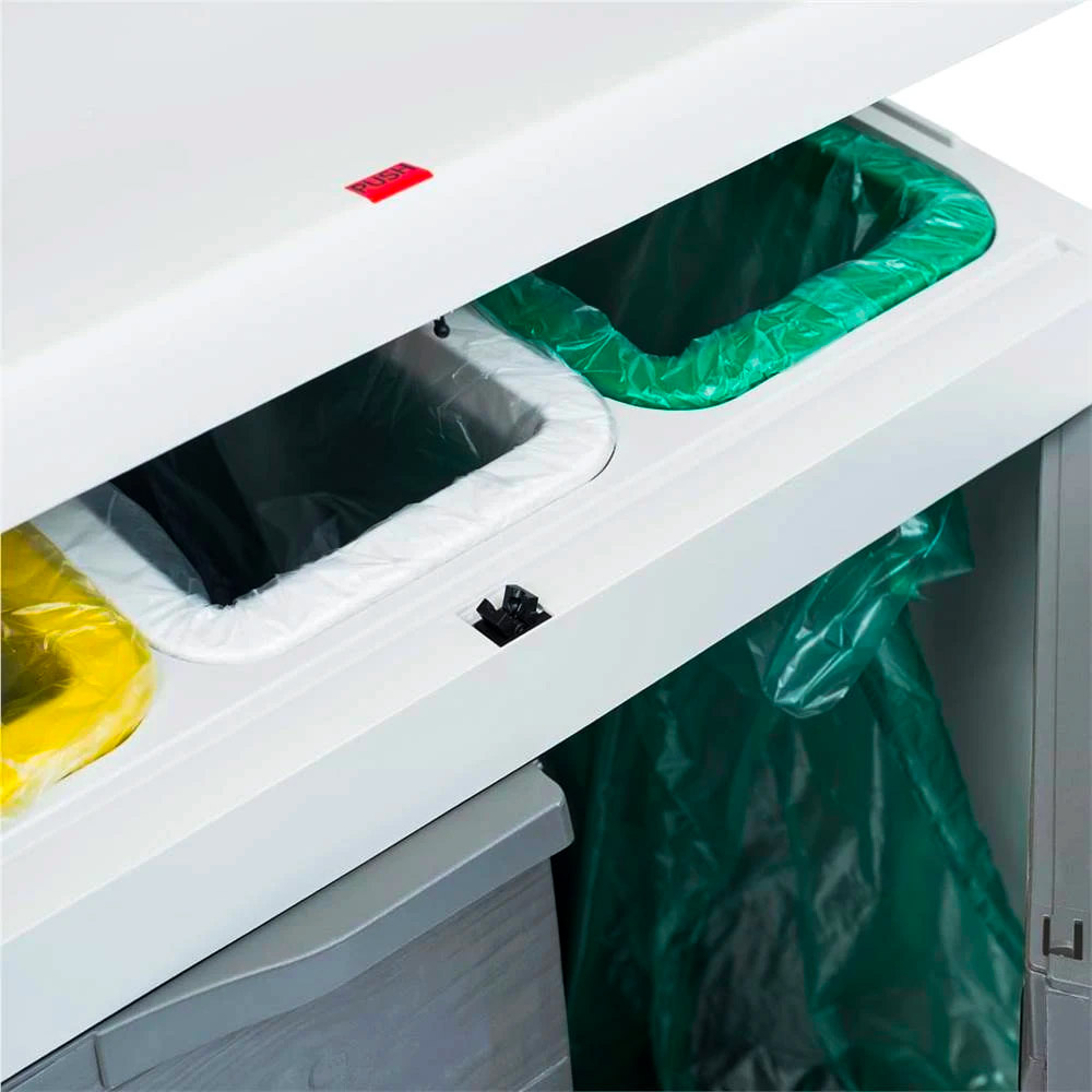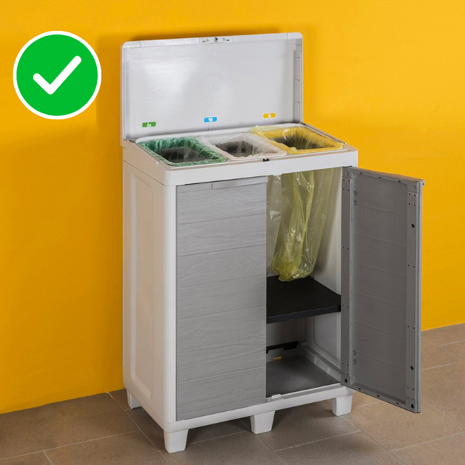 È dotato di tre distinti scomparti, ognuno dei quali contraddistinto da un vivace colore verde, bianco e giallo, avrai la comodità di identificare facilmente il tipo di rifiuto corrispondente a ciascuna sezione: