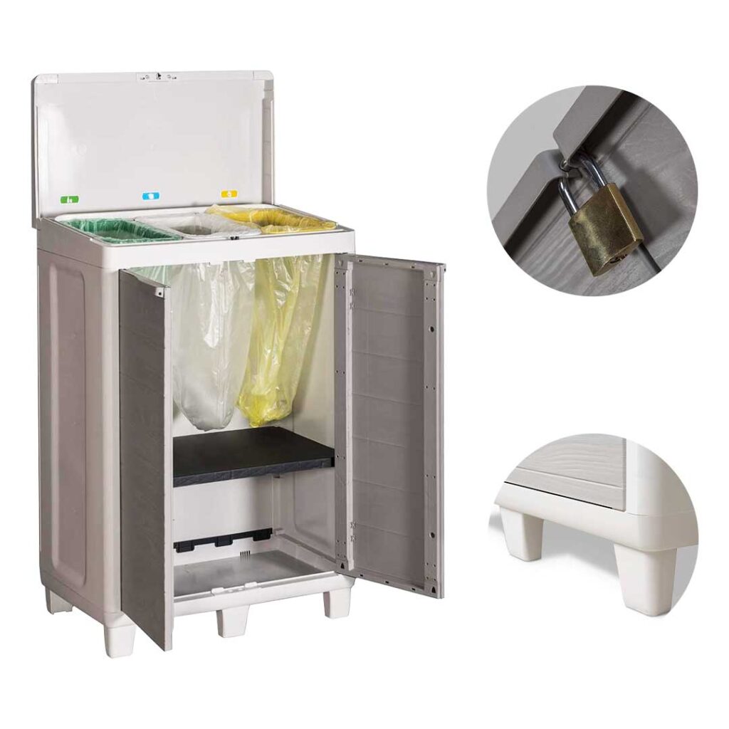 Non mi aspettavo una qualità così alta a questo prezzo! L’armadietto è facile da montare ed è resistente alle intemperie, adoro l’apertura a pressione del coperchio! Lo considero un ottimo acquisto per la raccolta differenziata.