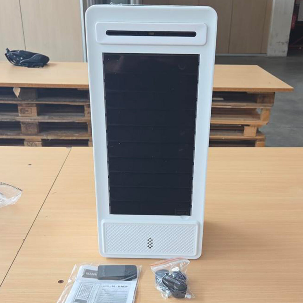 Il design verticale e compatto si integra perfettamente in qualsiasi spazio, da casa all’ufficio.