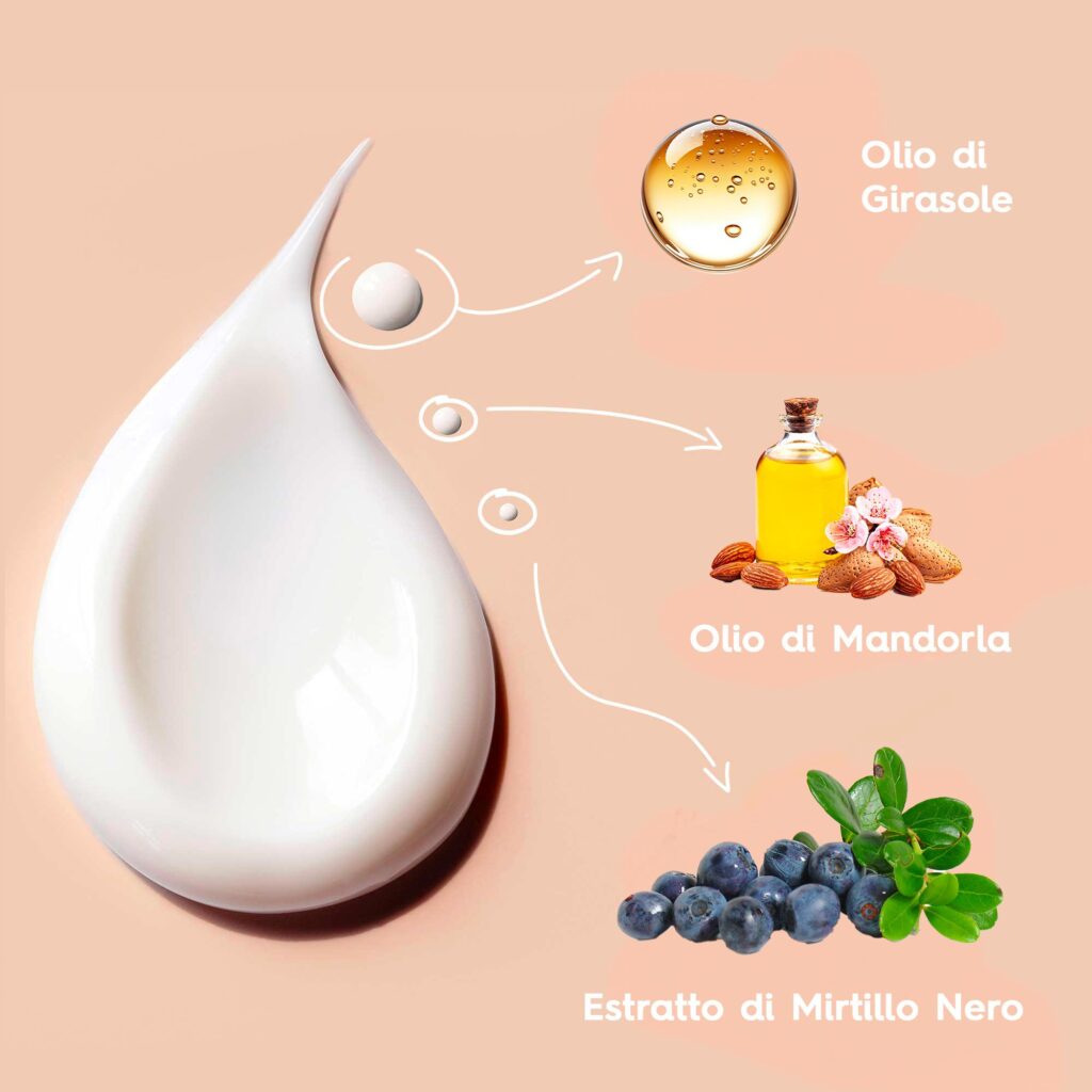 Acqua, helianthus annuus seed oil, prunus amygdalus dulcis oil, glycerin, cetearyl alcohol, ceteareth-25, glyceryl stearate, taraxacum officinale root extract, vaccinium myrtillus fruit extract, parfum, citric acid, disodium edta, xanthan gum, sodium benzoate, methyl nicotinate, potassium sorbate, tocopheryl acetate
