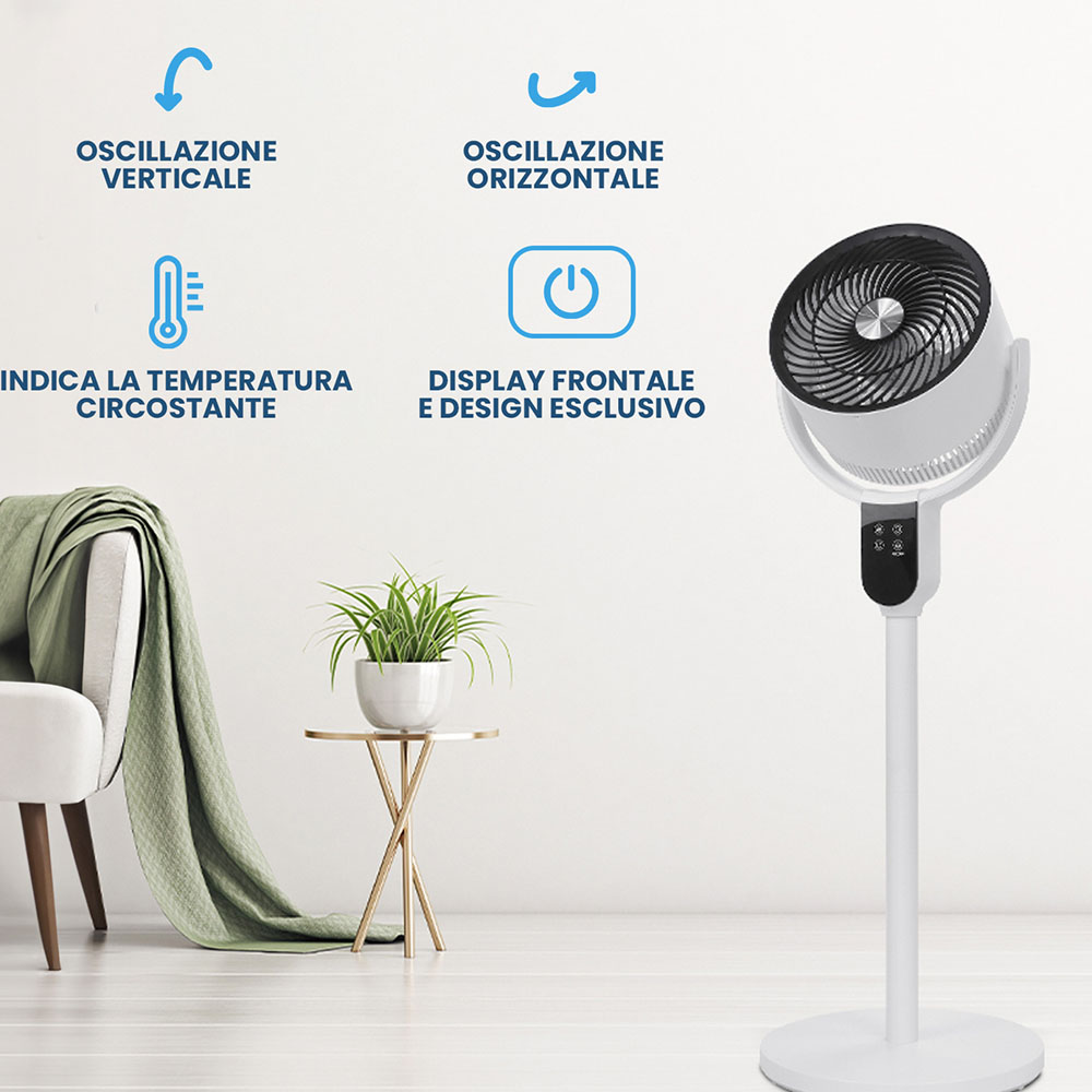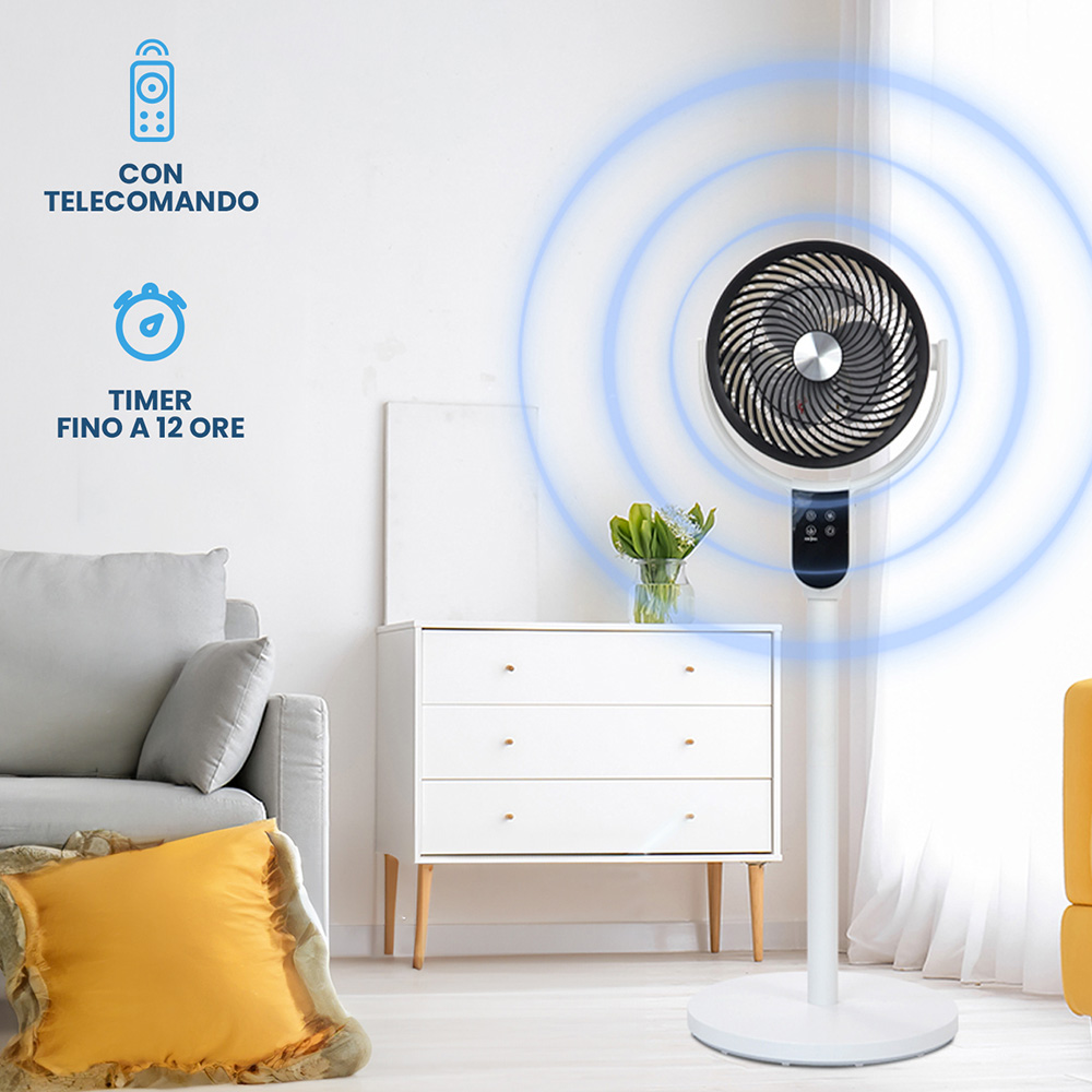 Programma con facilità l’accensione e lo spegnimento automatico, garantendo una freschezza ottimale quando ne hai bisogno. Con questa funzione, il Ventilatore offre una soluzione pratica per massimizzare l’efficienza energetica