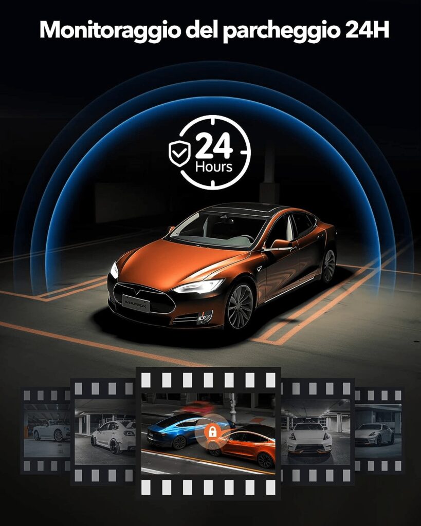 Grazie alla funzione di monitor di parcheggio, il dispositivo registra e salva automaticamente i video durante il periodo di sosta. Questa caratteristica fornisce una vigilanza costante, offrendoti tranquillità e sicurezza aggiuntiva per il tuo veicolo.