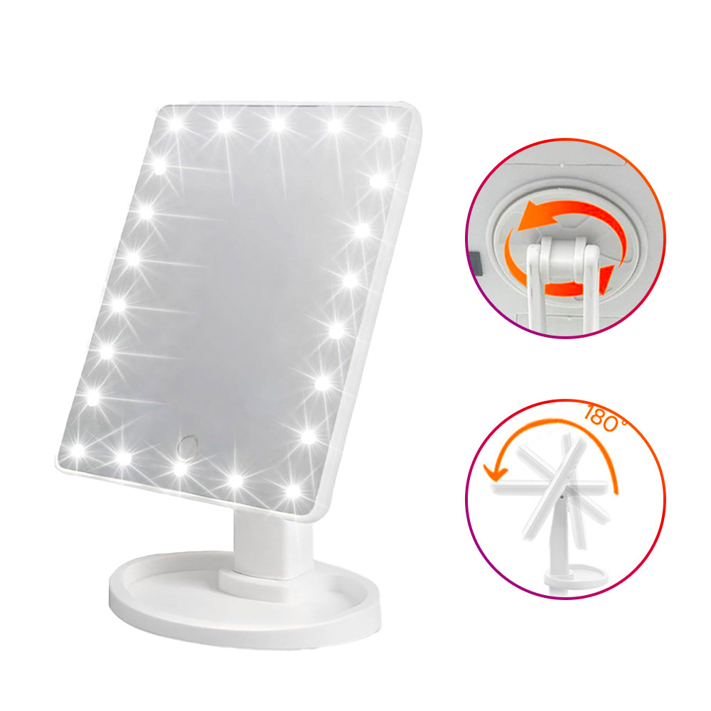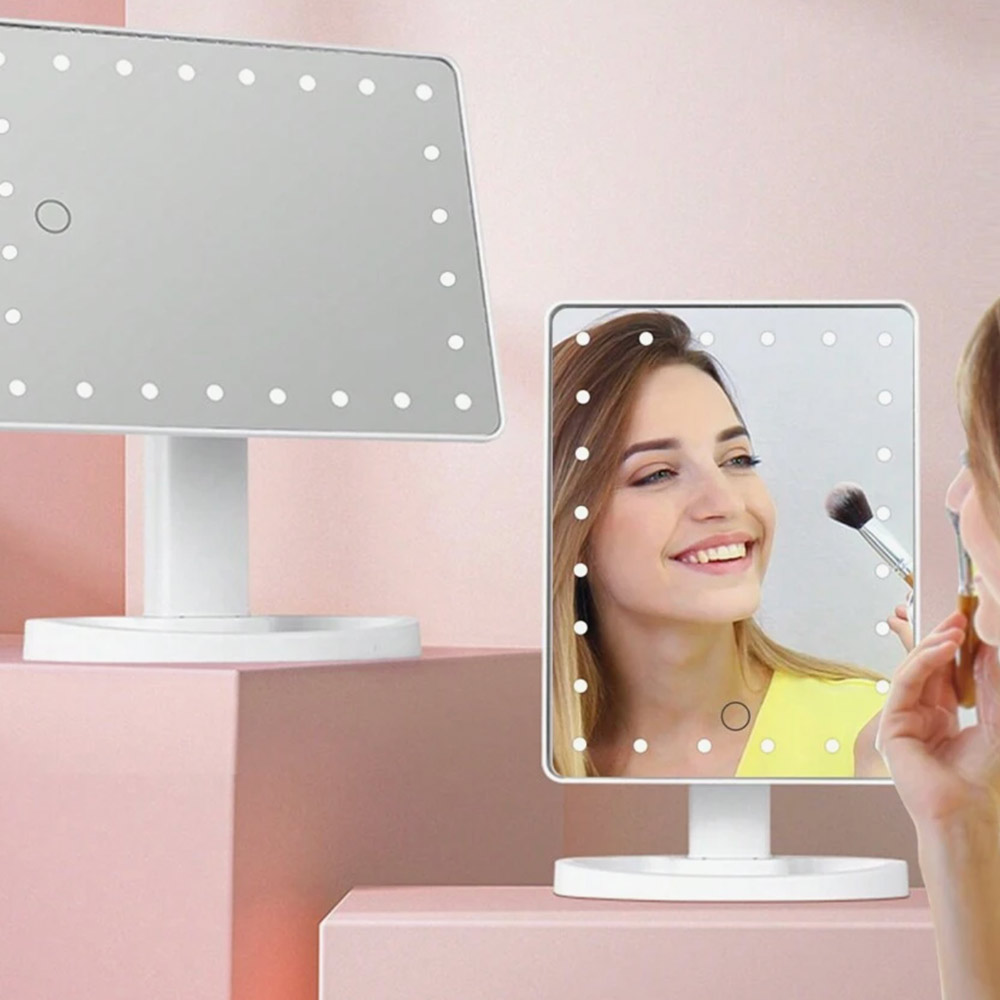 Lo specchio è dotato di 22 LED luminosi che circondano il bordo, offrendo un’illuminazione uniforme e brillante. Questa caratteristica garantisce una visibilità ottimale del viso durante l’applicazione del trucco, permettendoti di ottenere risultati precisi e impeccabili.
