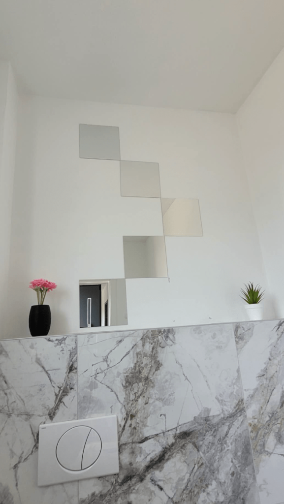 L’installazione è stata semplice e veloce grazie al nastro biadesivo di alta qualità incluso, la luminosità che questi specchi portano nella stanza è davvero sorprendente.