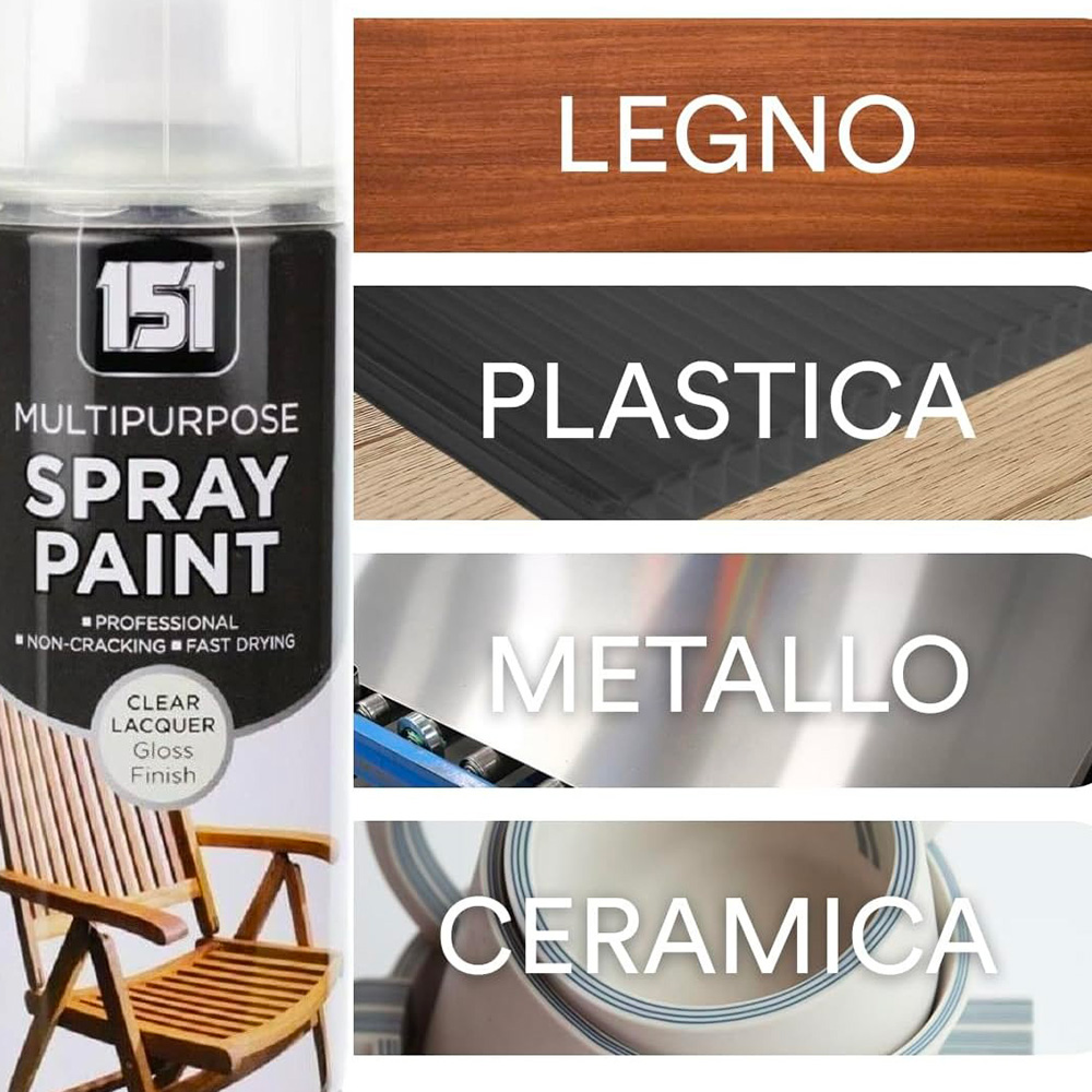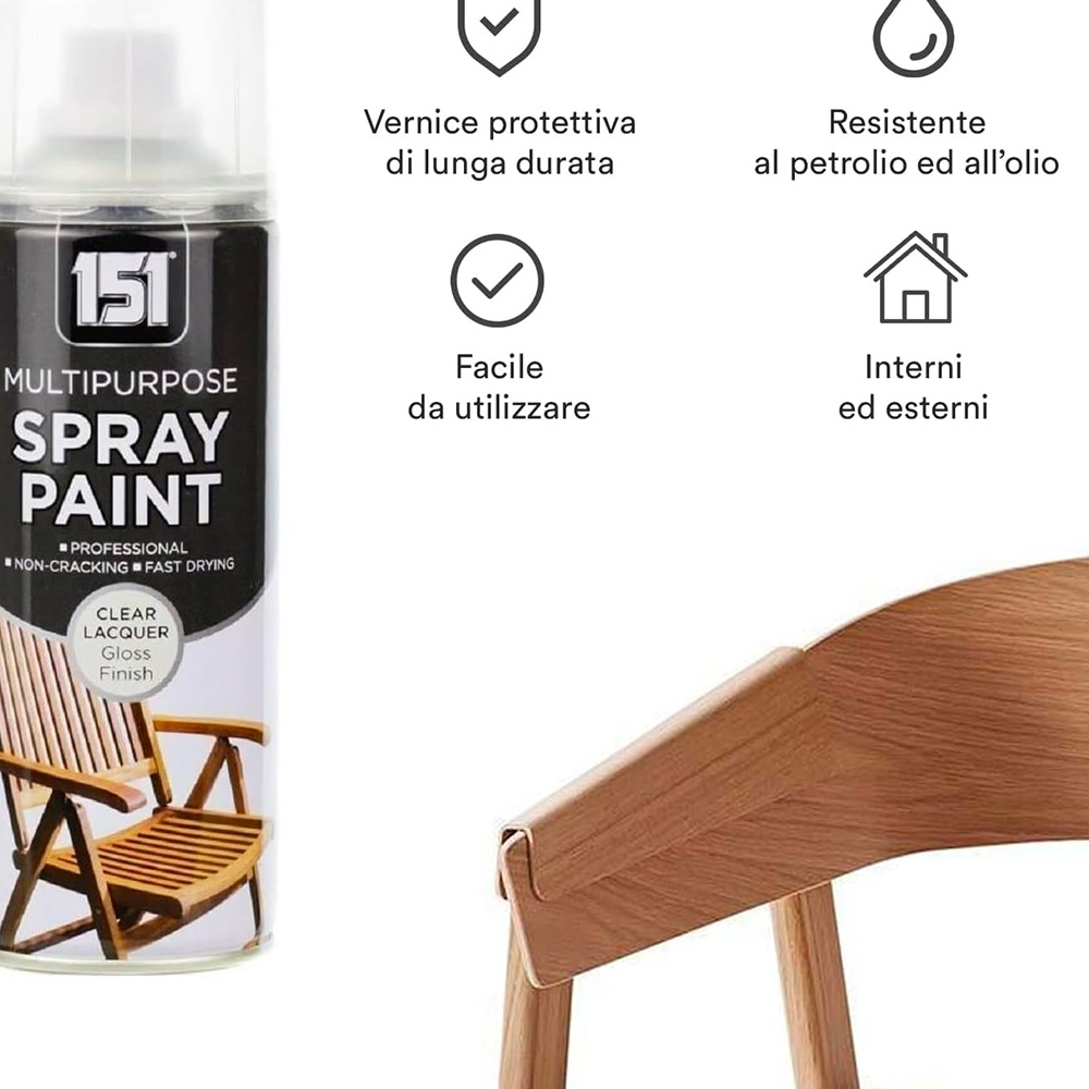 La Vernice Spray Lucida 151 è la scelta ideale per chi desidera portare nuova vita e splendore a mobili e superfici in modo rapido ed efficace. Con la sua finitura lucida e liscia, questa vernice trasparente aggiunge un tocco di eleganza a qualsiasi progetto di restauro.