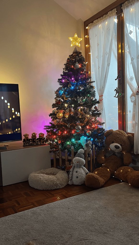 La lunghezza perfetta ha permesso di avvolgere ogni ramo, creando un effetto luminoso avvolgente. Il telecomando è comodo e veloce, permettendomi di cambiare i colori senza dover toccare l’albero.