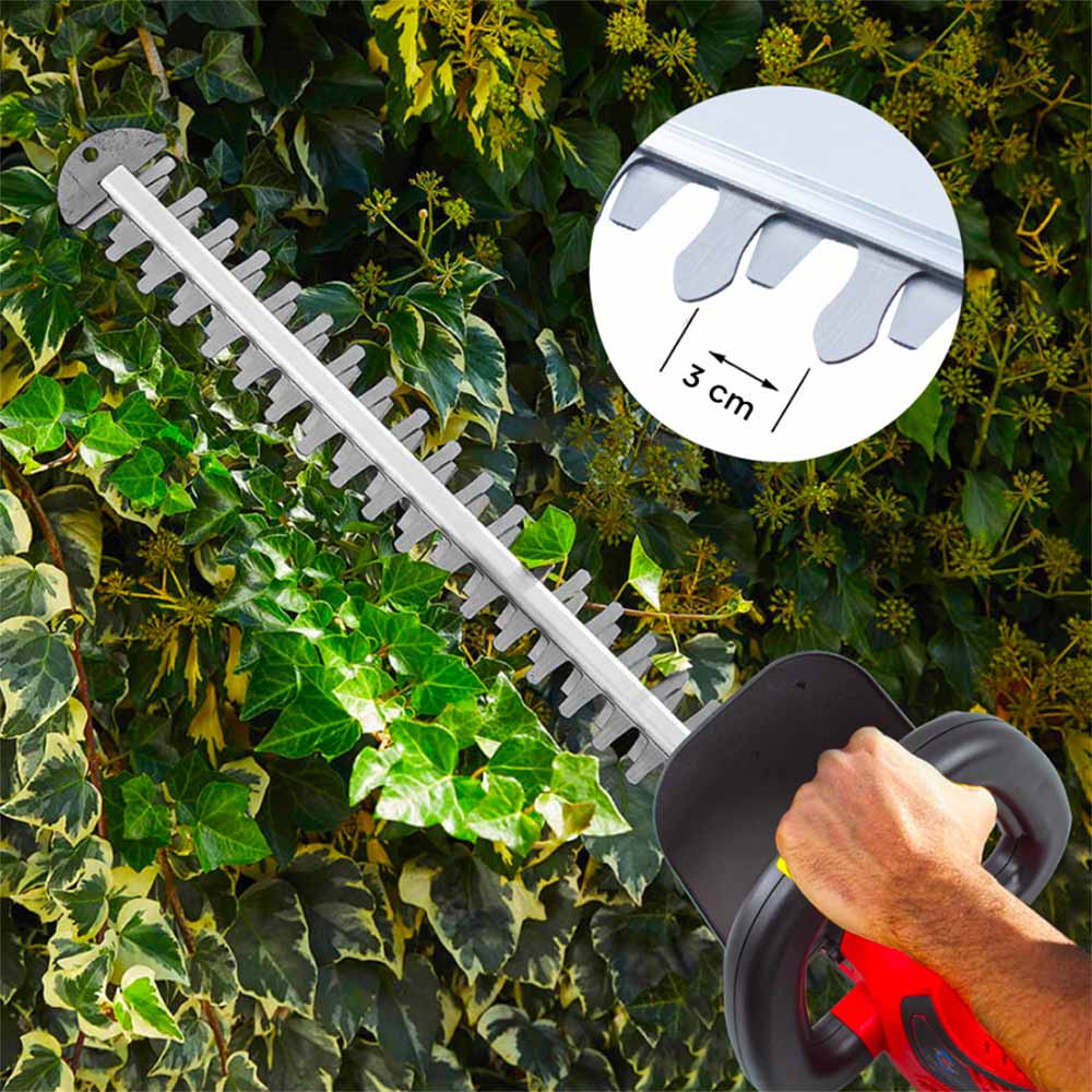 È dotato di una lama eccezionale con un’ampia distanza di 3 cm tra i denti, rendendola ideale per rifinire siepi e arbusti impegnativi con la massima precisione e senza sforzo. Potrai ottenere tagli puliti e accurati, anche su vegetazione densa e difficile. La lama con ampia distanza tra i denti assicura una maggiore facilità di scorrimento e una ridotta probabilità di inceppamento, consentendoti di lavorare in modo efficiente e senza interruzioni.