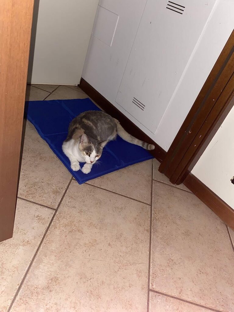 Il tappetino refrigerante è ottimo. Grandezza e colore come da descrizione. Inizialmente i cani non se lo sono filato di striscio poi invece, capendo l’utilità, si sono sempre coricati sopra. Robusto e resistente. Ho il cane più grande che fa la cuccia scavandogli sopra e non è riuscito a forarlo. Io lo lavo con una spugnetta e gli passo anche l’aspirapolvere sopra, nessun danno. Sono soddisfatta!