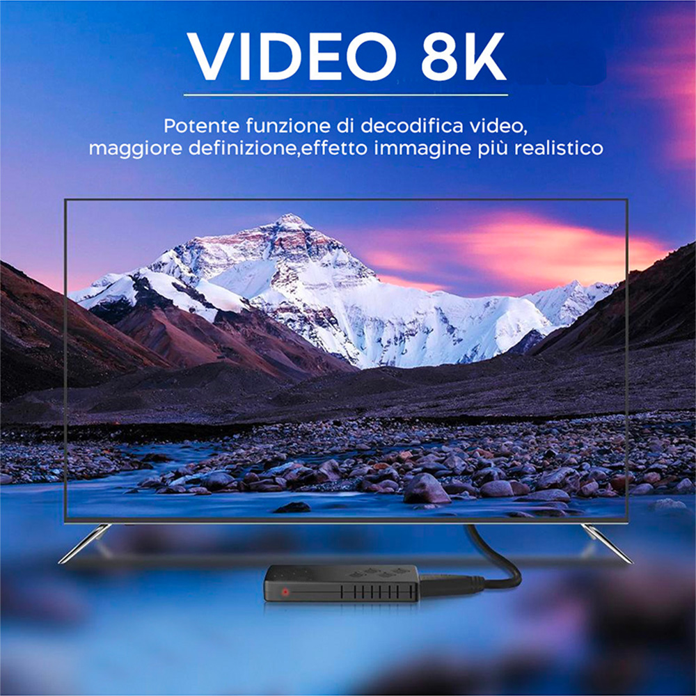 Il TV Box Stick – Android 8K Ultra HD offre un’incredibile esperienza di intrattenimento grazie al suo processore Quad-Core e al supporto per lo streaming 8K. Progettato per garantire fluidità e qualità d’immagine eccezionali, trasforma qualsiasi TV in una Smart TV avanzata in pochi secondi.