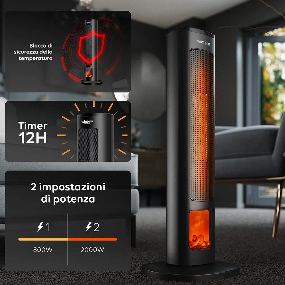 “Ottima stufa! Riscalda velocemente e l’effetto fiamma è davvero bello. Il telecomando è comodissimo e la funzione di oscillazione distribuisce il calore in modo uniforme. Perfetta per ogni ambiente!”