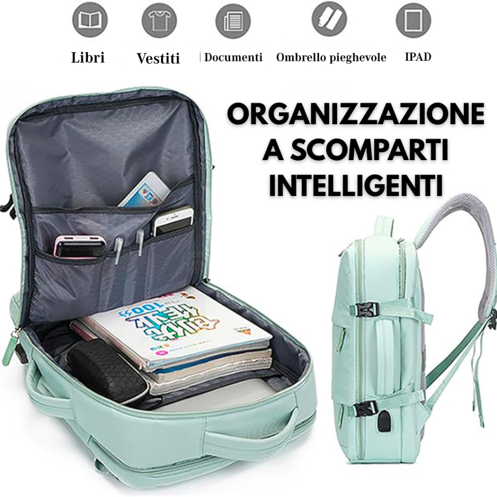 Grazie a questo Zaino da Viaggio ad alte prestazioni, spostarsi sarà più comodo, organizzato e tecnologico che mai — ovunque tu vada!